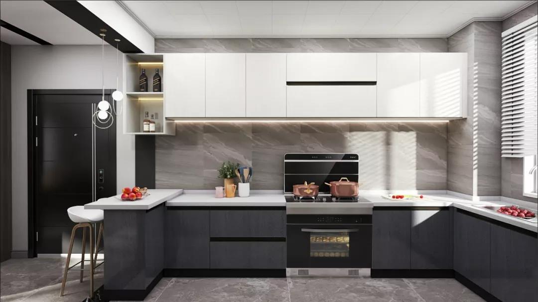 在全鋁餐邊柜的中間增加嵌入酒瓶的網格架